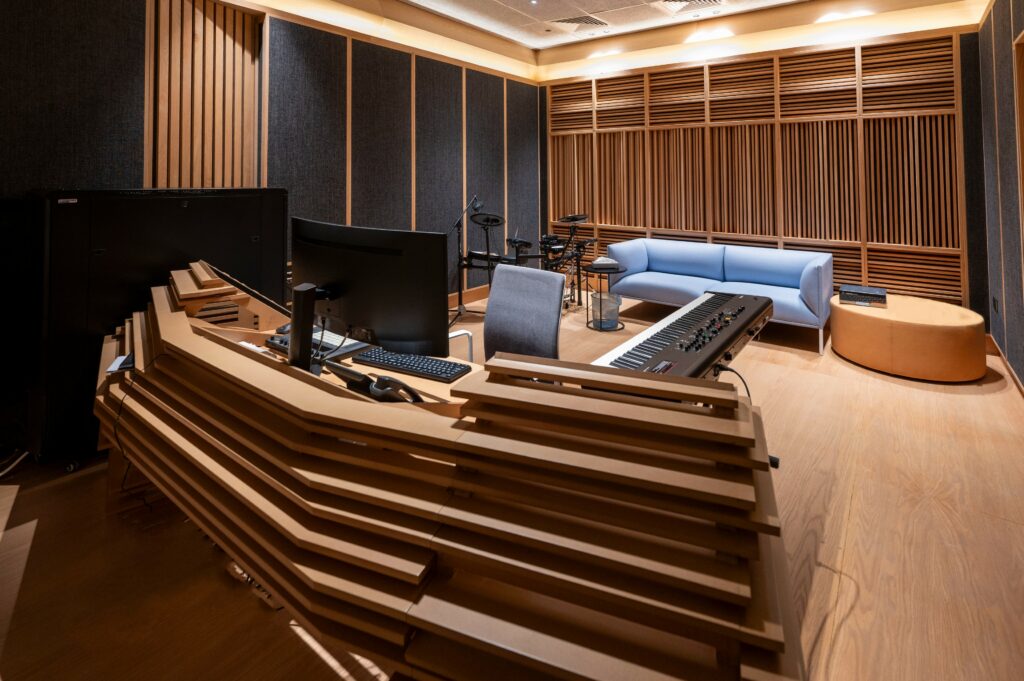 The Saudi Music Hub introduces students to the concepts of recording, sequencing and mixing music using computer based Digital Audio Workstations (DAWs). Topics covered include digital audio and MIDI theory, DAW signal flow and system requirements, MIDI sequencing, stereo mixing techniques, and use of softwarebased virtual instruments and effects processors such as equalizers, compressors and reverbs. Students receive hands on practice in digital music production in a state of the art production lab.